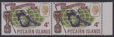 | 1966 4d World Championship Football, right marginal pair, SG 57, MUH. Variety - left stamp break in "N" of Pitcairn