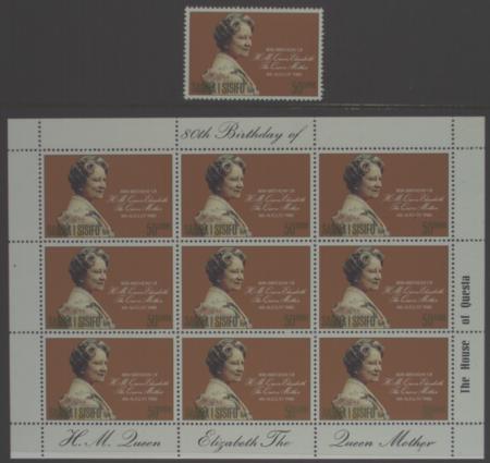 | 1980 50s, Queen mother's 80th birthday, single + sheetlet of 9, SG 572