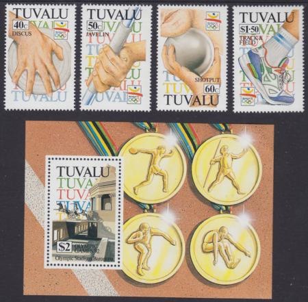 | 1992 Barcelona Olympics, set of 4 + min sheet of 1, SG 647-50 + MS651, MUH |