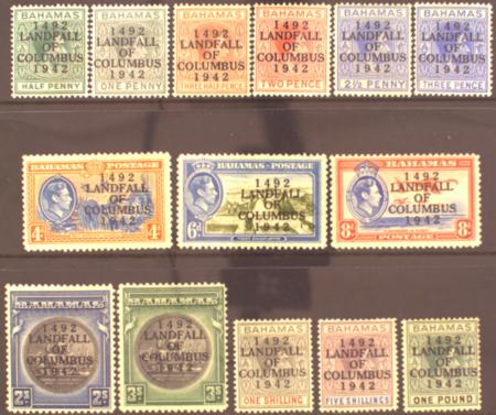 | 1942 Bahamas Columbus, set of 14, SG 162-175a, MH, £1 has tropicalised gum |