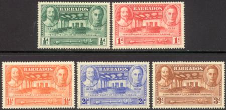 | 1939 Barbados Tercentenary of General Assembly, Set of 5, SG 257-61, MH