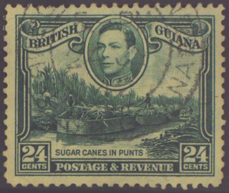 | 1938 British Guiana KGVI 24c Blue-Green wmk upright, SG 312 used