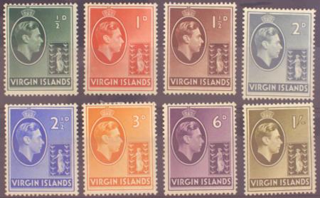 | 1938 British Virgin Islands ½d-1s KGVI Definitives (8), SG 110-17, MH |