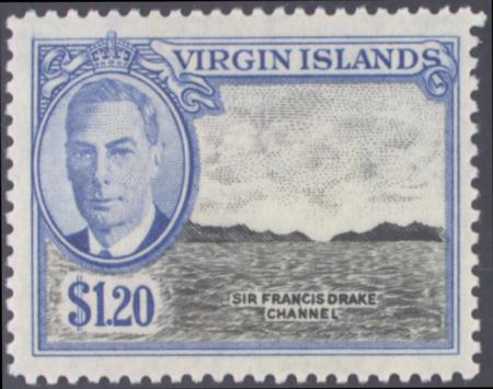 | 1952 British Virgin Islands $1.20 Black & Bright-Blue, SG 145, MH |