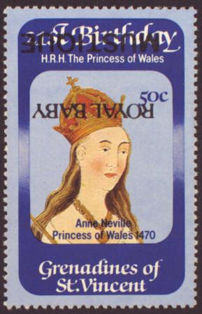 | 1982 50c MUSTIQUE Royal Baby Overprint Inverted (1), SG 234C, MUH |