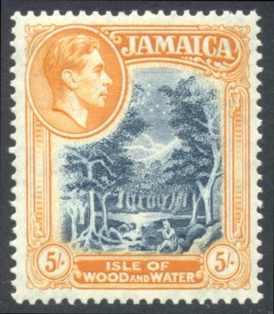 | 1938 Jamaica 5/- KGVI slate-blue & yellow-orange, SG 132 MUH |