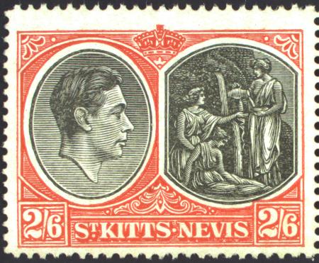 | 1945 2s6d Black & Scarlet, perf 14, ordinary paper, SG 76ab, MUH