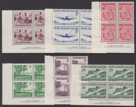 | 1963 Definitives, set of 6, SG 1-6, MUH Imprint blocks of 4, BW CK1-6z