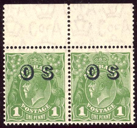 | 1d Green Opt OS, marginal pair, position 8/1-2, BW 82(OS), MUH |
