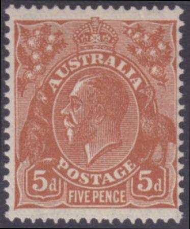 | 5d Brown, position 3L7, State 2, BW 127f, Used, recurrent roo flaw