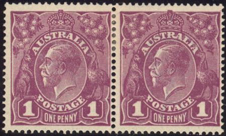 | 1d Violet, horizontal pair, position 7/59-60, 'RA' joined, BW 76(4)j, MH |