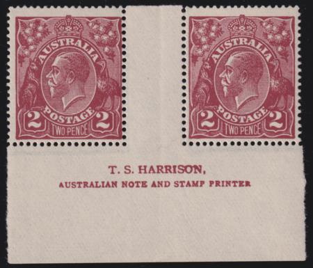 | 2d Brown Electro 16 Harrison Imprint pair MUH, BW 97(16)z, slight storage mark