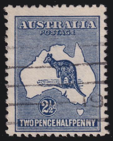 | 2½d Indigo Roo 1st Wmk, Thick WA coastline variety, BW 9(2)d used