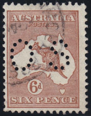 6d Deep Chestnut, nice example Perf OS with variety scratch map to circle, position 3L54, BW 21(3)g & ba - SG O76