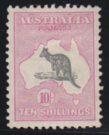 | 10/-Grey & Pink Kangaroo, short line at mouth of Spencer Gulf, position R55, Mint, BW 49 - SG 112 |