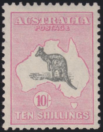 | 10/- Grey & Pale Pink SM Wmk, short shade line top of Bight, BW 49A - SG 112 MH |