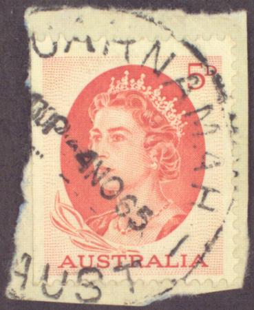 | 5d red QEII non helecon booklet stamp on piece - SCARCE, Carnamah, WA cancel, BW 403a |