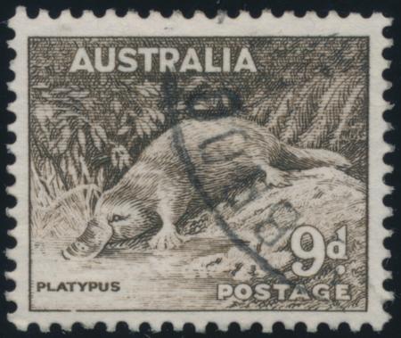 | 9d Platypus perf 14x15, weak entry below Platypus retouched, A U8/1, BW 206d, U |