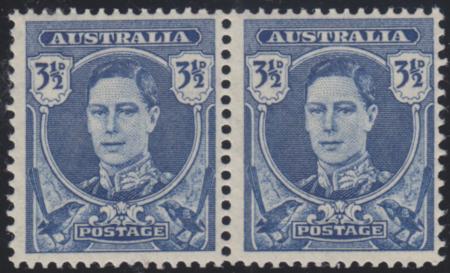 | 3½d blue KGVI MUH pair - weak entry below wren left, BW 231l |