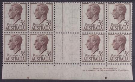 | 3½d brown KGVI definitive, Perf Pip block of 8 from bottom of sheet, BW 253be