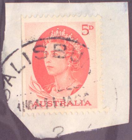 | 5d red QEII non helecon booklet stamp on piece - SCARCE, Salisbury 2, SA cancel, BW 403a