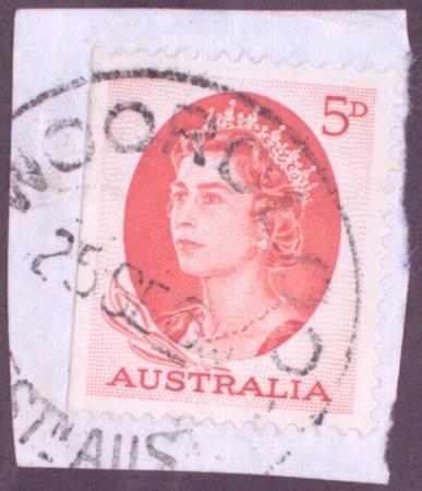 | 5d red QEII non helecon booklet stamp on piece - SCARCE, Wooroloo, WA cancel, BW 403a