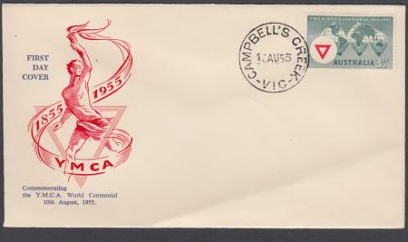 | 10 Aug 1955 FDC World Centenary YMCA SG286 3½d on Wesley cover postmarked Campbell''s Creek Victoria