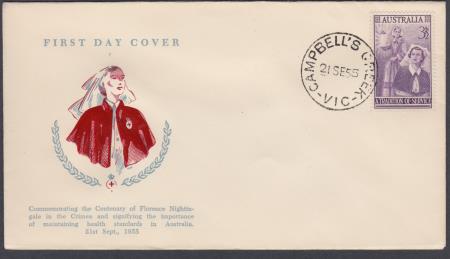 | 21 Sep 1955 FDC Nursing Profession Commemoration SG287 3½d on Wesley cover postmarked Campbell''s Creek Victoria