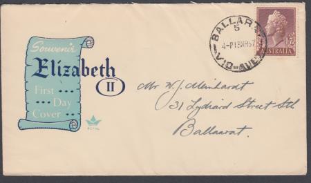 | 13 March 1957 FDC New QEII Stamps SG282d 1s7d on Royal cover postmarked Ballarat Vic and addressed to Ballarat Victoria