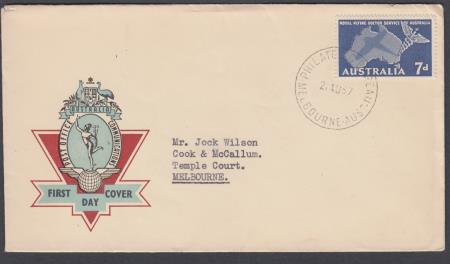 | 21 Aug 1957 FDC Royal Flying Doctor SG297 7d on P.O. Hermes cover postmarked Philatelic Bureau Melbourne Victoria and addressed to Melbourne Victoria