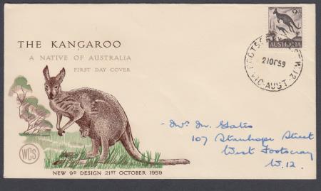 | 21 Oct 1959 FDC SG318 Kangaroo 9d on Wesley cover postmarked Footscray West Victoria and addressed to West Footscray Victoria