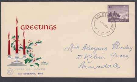 | 04 Nov 1959 FDC SG333 Christmas 5d on Wesley cover postmarked Golden Square Victoria and addressed to Armadale Victoria