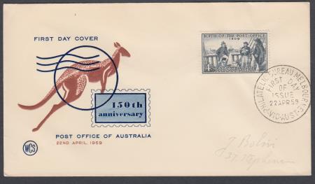 | 22 Apr 1959 FDC SG331 4d 150th. Anniv Australia Post Office Wesley cover Variety