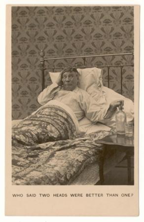 Bamforth & Co postcard captioned "Who said two heads were better than one". Unused, some album discoloration on back.