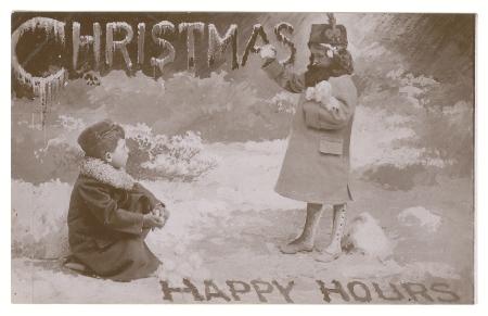| Children in Snow Christmas Greetings Photo c.1912 |