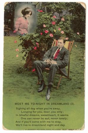 Bamforth Song Card series 4693/3 'Meet Me Tonight in Dreamland', unused, damage around edge.