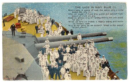 Bamforth Song Card series 4773 'The Lads in Navy Blue' set of three cards.