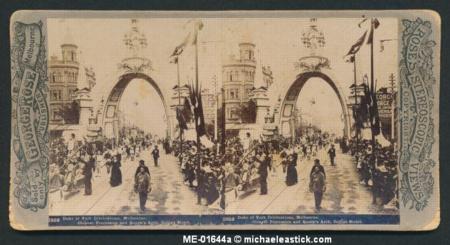 | Australia Rose's Stereoscopic Views - No. 2858 Duke of York Celebrations, Melbourne - Chinese Procession and Queen's Arch, Collins St.