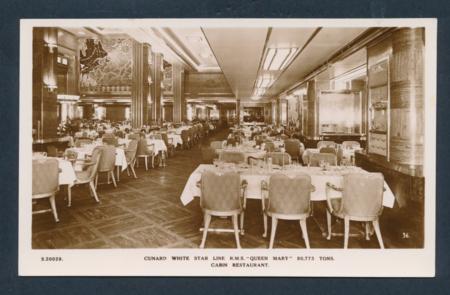 | Cunard White Star Line: RMS Queen Mary-Cabin Restaurant Postcard |