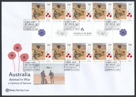 | 27-Oct-2015 Australia Centenary of Service - Animals in War Gutter Strip Wesley FDC (c) |