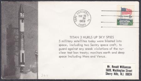 | USA 1969 (23 May) Space Cover TITAN 3 HURLS UP SKY SPIES Cape Canaveral