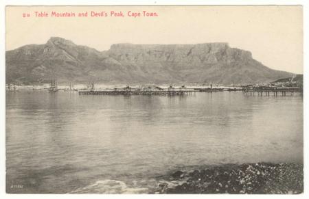 Postcard showing a view of Table Mountain and Devil's Peak, Cape Town, unused.