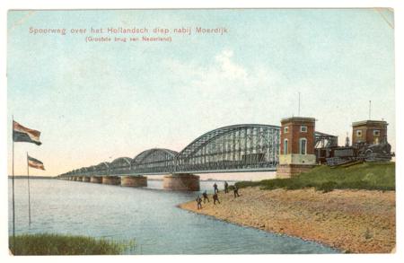 Spoorweg over het Hollandsch diep nabij Moerdijk (Grootste brug van Nederland) unused, adhesive tape on back.