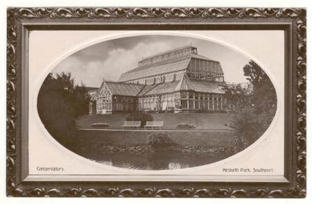 Shenley photo postcard featuring the Conservatory, Hesketh Park, Southport.