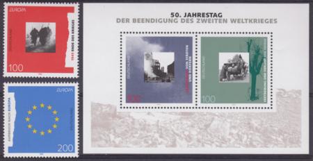| 1995 Enf of WW2, set of 2 + souv sheet of 2, Sc 1894-5 + 1897, MUH