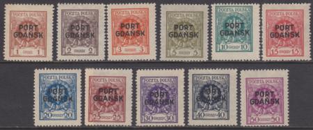 | PO Abroad - Danzig: 1925 overprinted Port Gdansk, set of 11, Sc 1K1-11, MUH