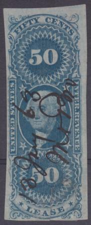 | 1862-71 50c Blue, imperf, Lease Revenue, Sc R57a, used |