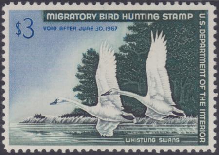| 1966 $3 Whistling Swans, Hunting Permit Stamp, Sc RW33, MH |