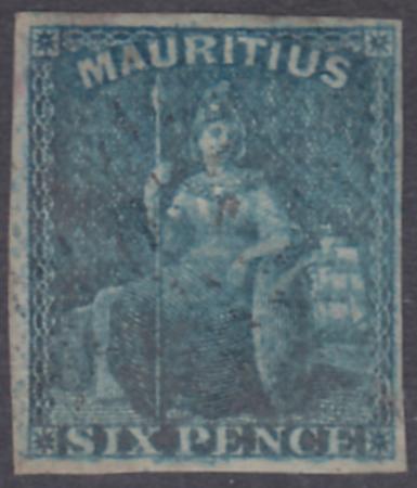 1859 6d Blue, imperf 4 margins, SG 32, used